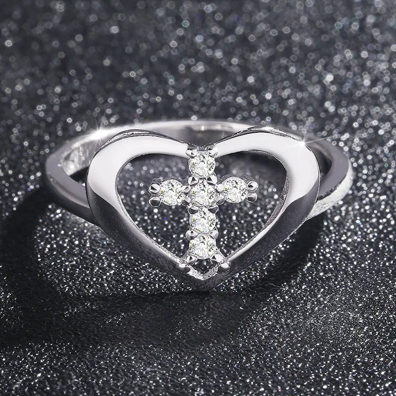 Embrace your style and spirituality with the Heart Zircon Cross Ring. Order yours today and wear your faith with pride!